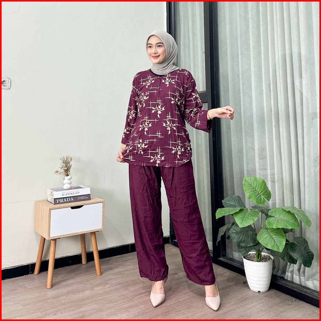 Oneset Rayon Adem Lengan 3 4 Kekinian - Set Wanita Viral Terbaru