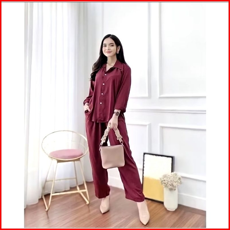 Mfq.id Premium Yetta One Set Wanita Polo Linen Setelan Wanita Motif Polos Linen Premium Terlaris Termurah Elegan Simpel