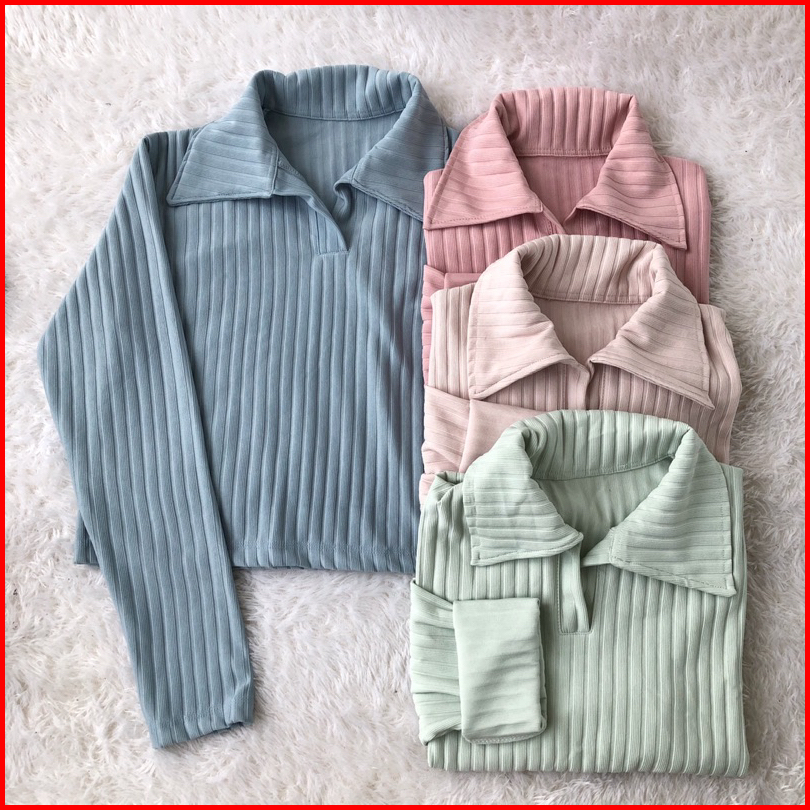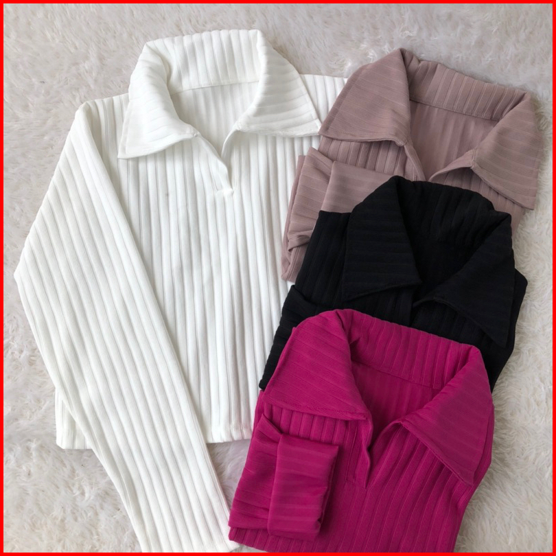 Baju Lengan Panjang Kerah Garis-garis Kallyoutfit