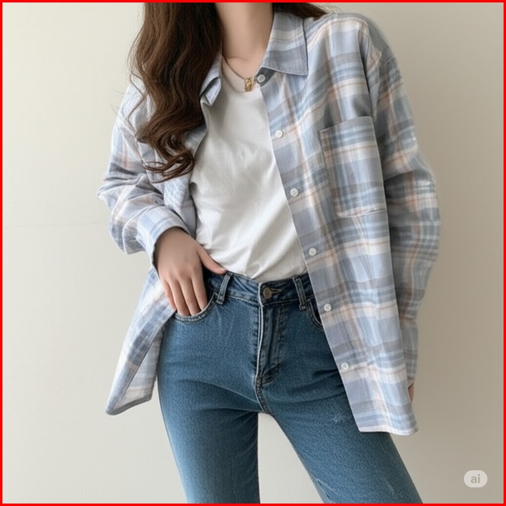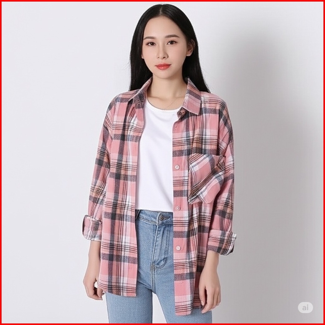 Elsyah Shirt Flanel - Kemeja Flanel Premium Wanita Oversize Lengan Panjang - Atasan Kemeja Wanita - Baju Kemeja Flanel -