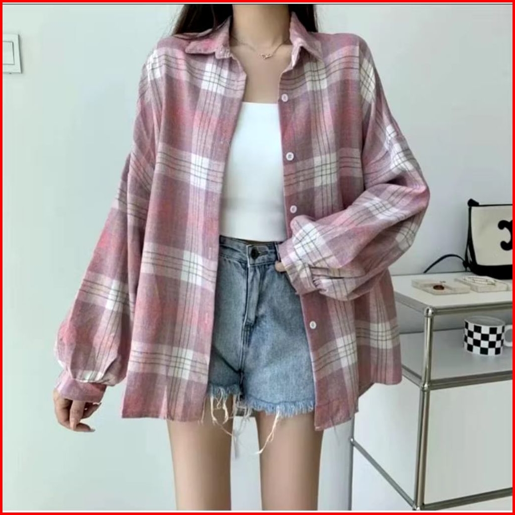 Kemeja Flanel Wanita Lengan Panjang Pria Kotak High Quality Terbaru