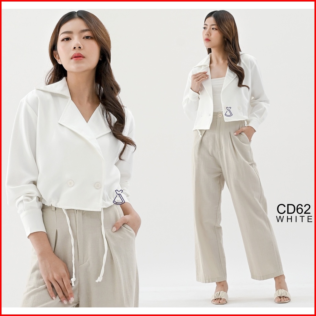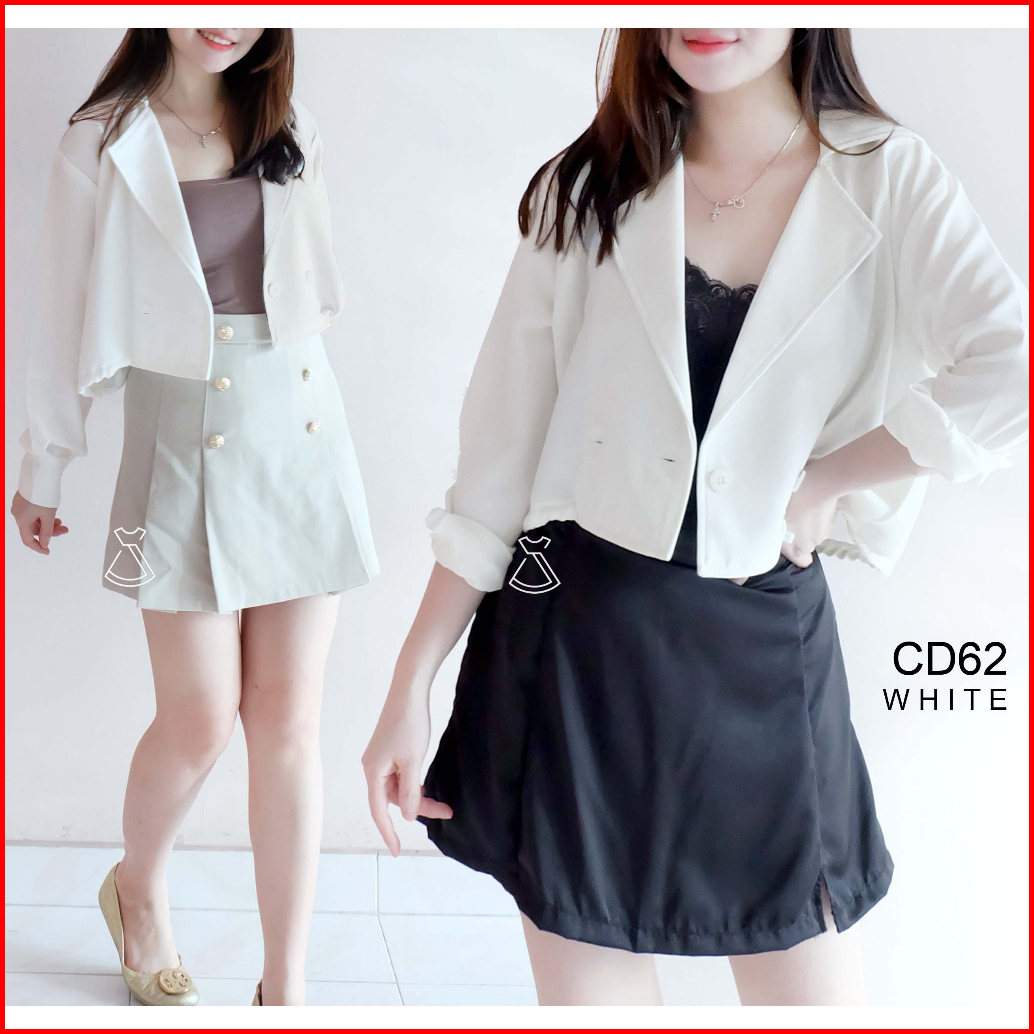Cd62 - Outer Blazer Wanita Basic Cropped Cotton Stylish Casual Look