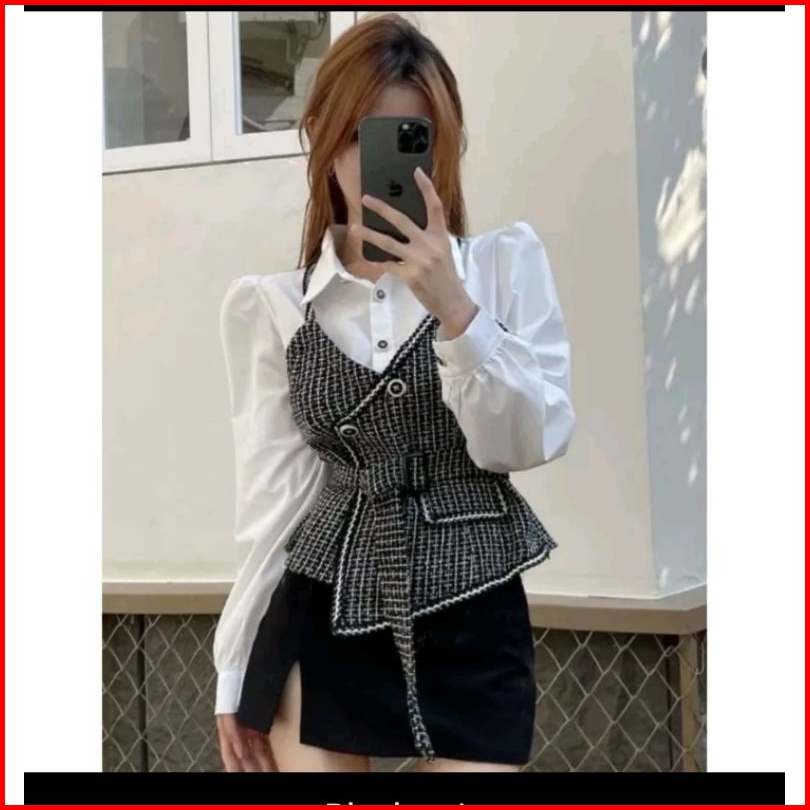 Atasan Kemeja Mix Rompi Nempel Fashion Import