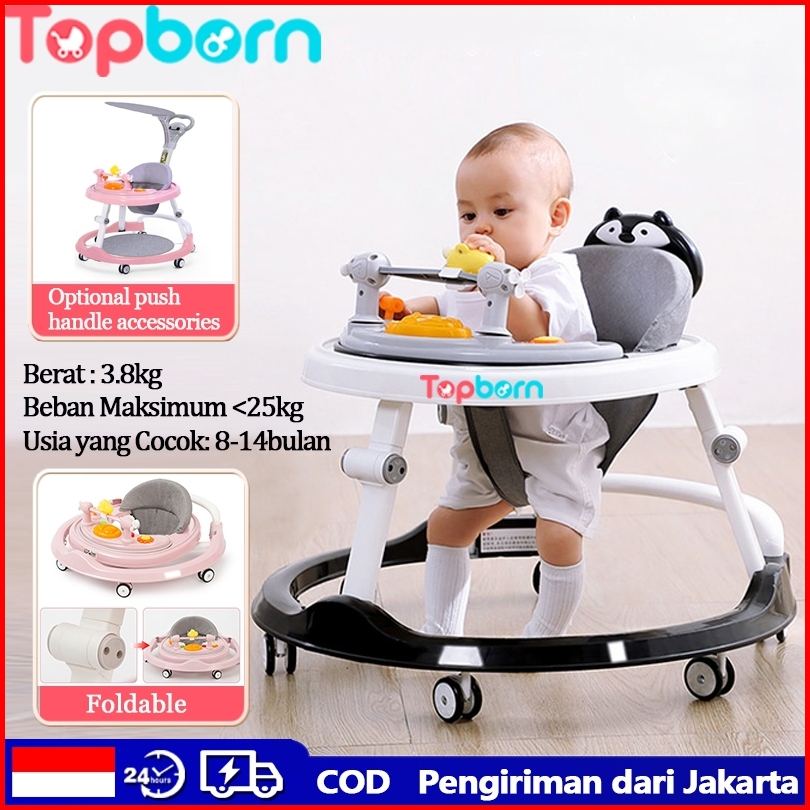 Topborn Baby Walker Membantu Bayi Belajar Berjalan Dapat Dilipat Tingginya Dapat Disesuaikan Dilengkapi Kotak Musik Sang