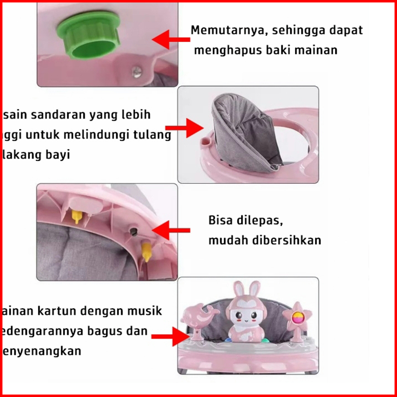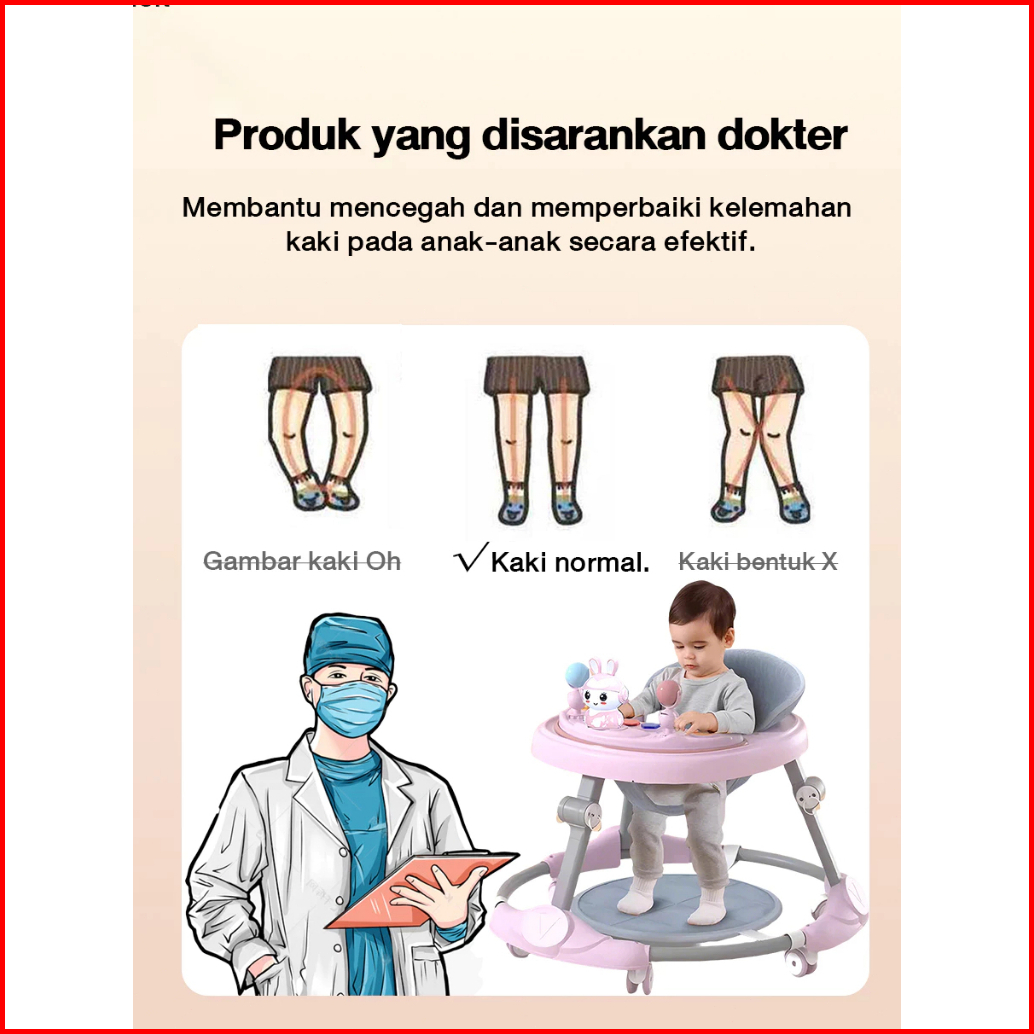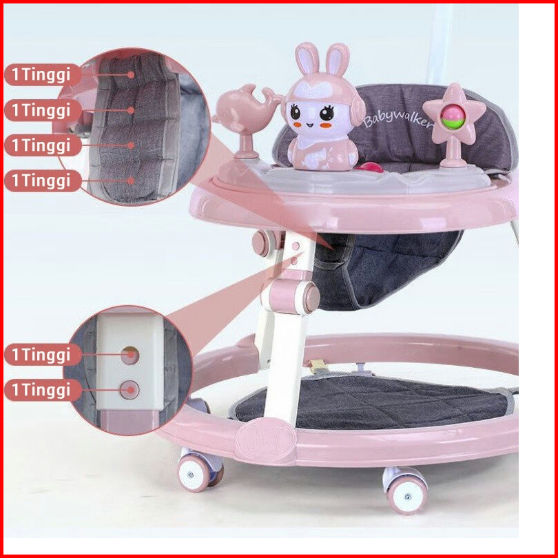 Beige Baby Walker Bayi Dilipat Portabel Kotak Musik Alat Belajar Jalan Anti Jatuh