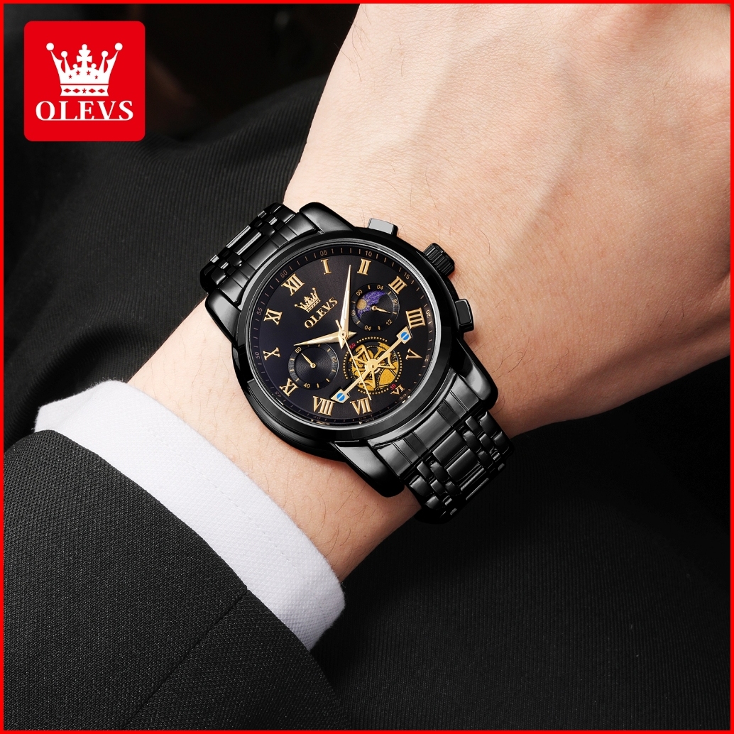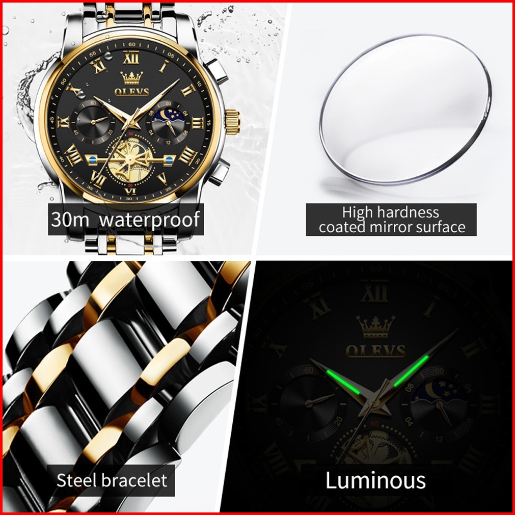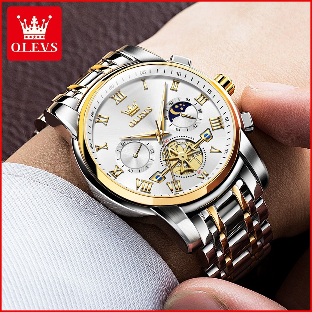 Olevs Jam Tangan Pria Anti Air Original Terbaru Mewah 2025 Multifungsi Chronograph Stainless Steel Watch Men 2859