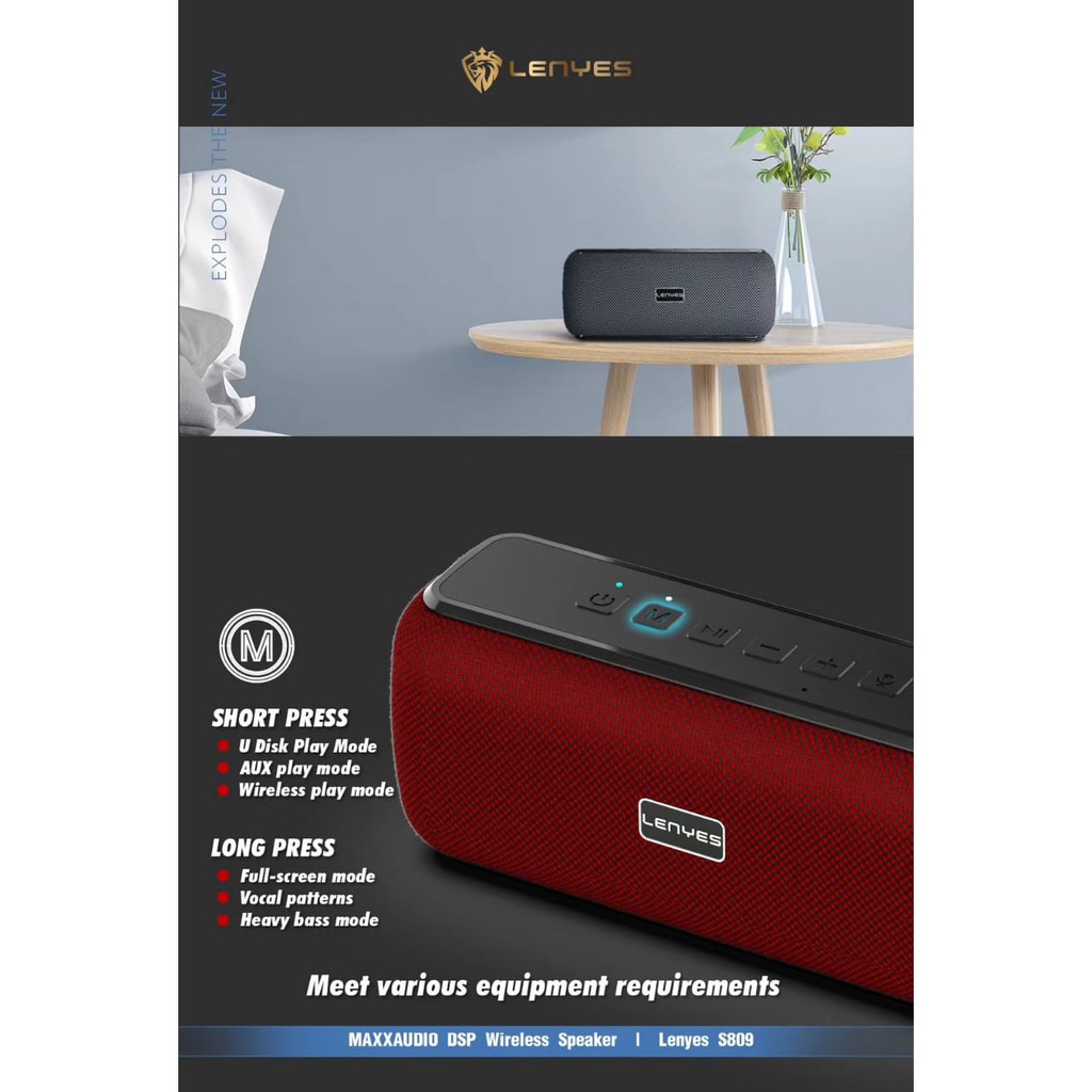 LENYES S809 60W MAXXAUDIO DSP WIRELESS BLUETOOTH HIFI STEREO PORTABLE SPEAKER POWERFULL BASS ORIGINAL OFFICIAL STORE