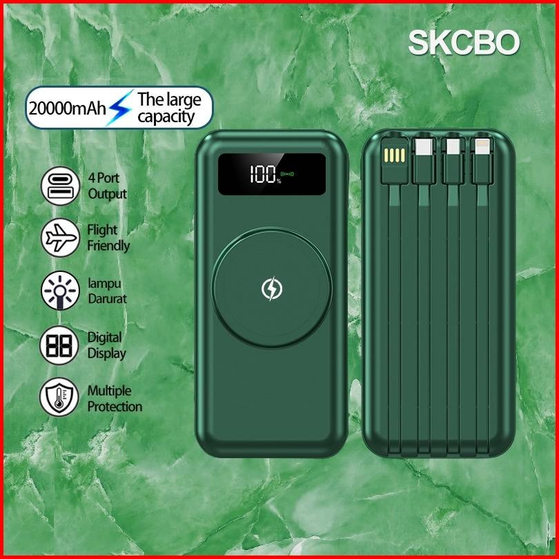 Skcbo Wireless Powerbank 20000mah Built In Cable Kompatibel Dengan Semua Ponsel Ori For Iphone Android
