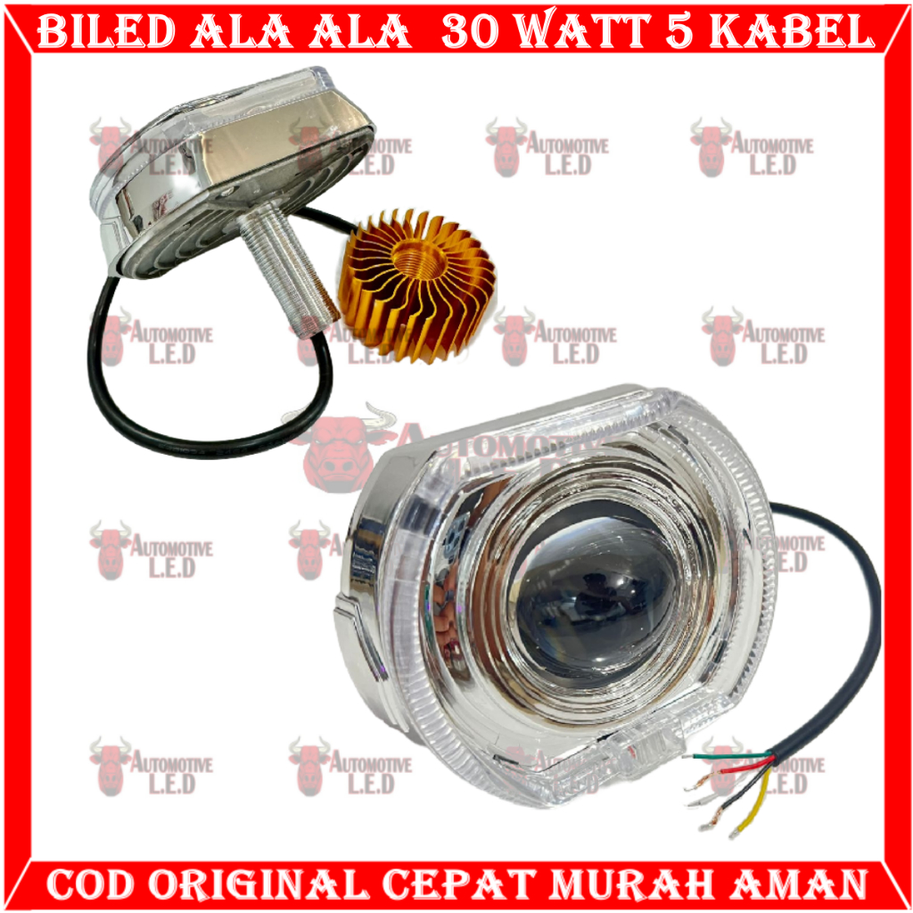 ORIGINAL BILED ALA ALA New Projie Biled 4.5 inchi cahaya Laser Cut Off jauh dekat 30watt plus devil merah full alumunium Waterproof 4 INCHI