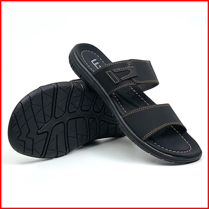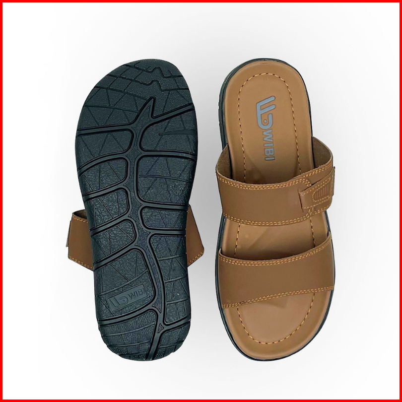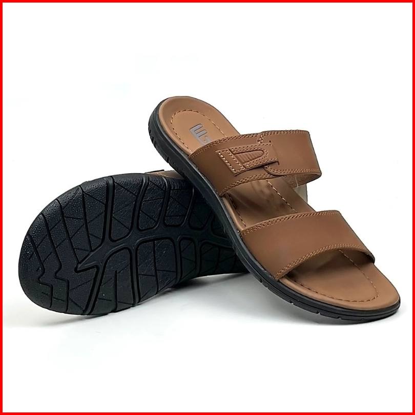 Wibi Elegant Low S21-01 Sandal Pria Dewasa Slop Kulit Ban 2 Cokelat Tua Size 39 - 43