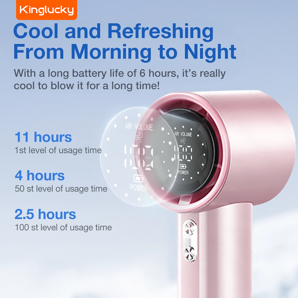 kinglucky Portabel Mini High-speed Kipas Strong Wind 100 Gear Adjustable Turbo kipas Kipas Angin Semi-Conductor Fan Digi