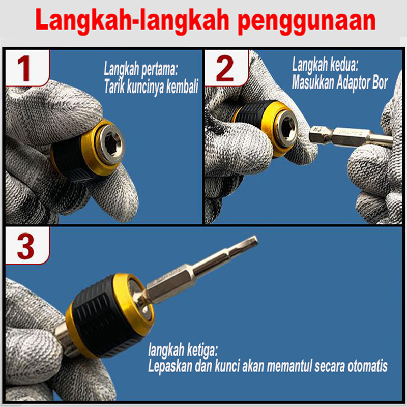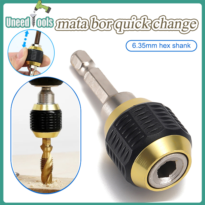 UneedTools Adaptor mata Bor quick change Chuck Heksagonal 5060mm pos yang diperluas 1 4 "Bits Nut Driver konverter cepat pop-up keyless drill chuck