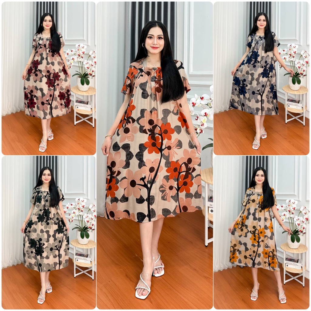 Daster super Jumbo kekinian terbaru Busui Bumil kerut dada Size LD 120 cm Fuji Pendek bahan Rayon Lengan Pendek Wanita Kekinian Bumil Karet Kerut Dada