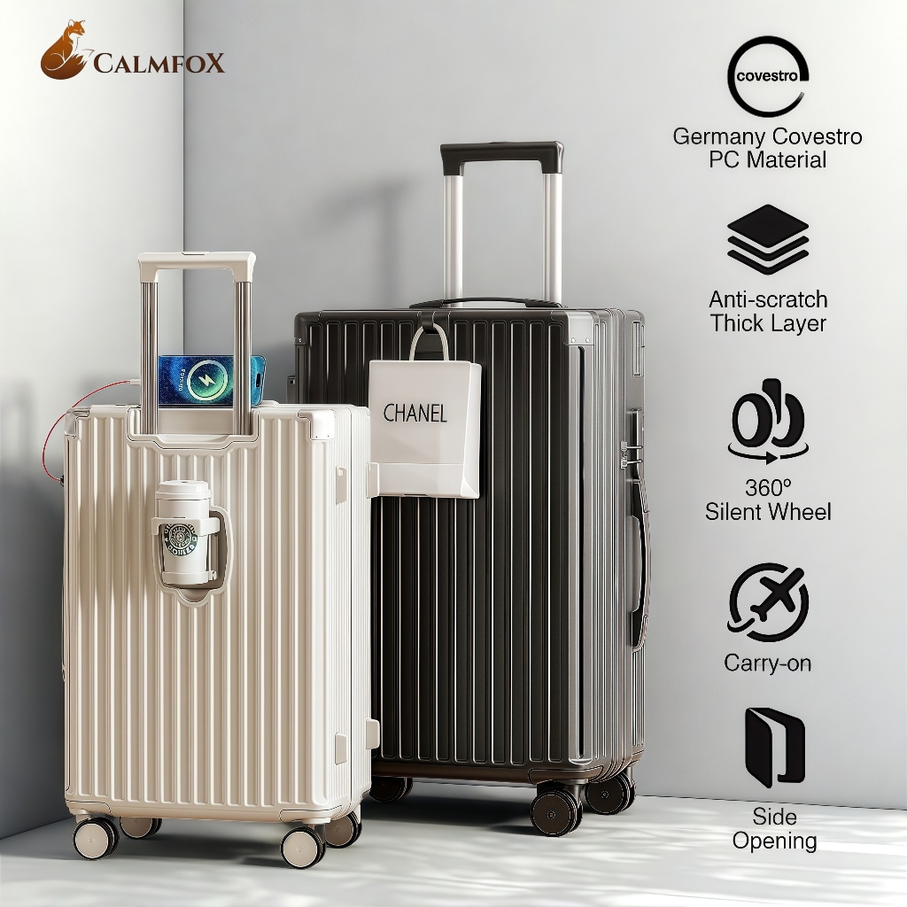 Clamfox Kapasitas Besar Koper 24 Inch 20''22 Inch Travel Kabin & Bagasi Laptop New Design Stand Cup / Charger Koper 2 In