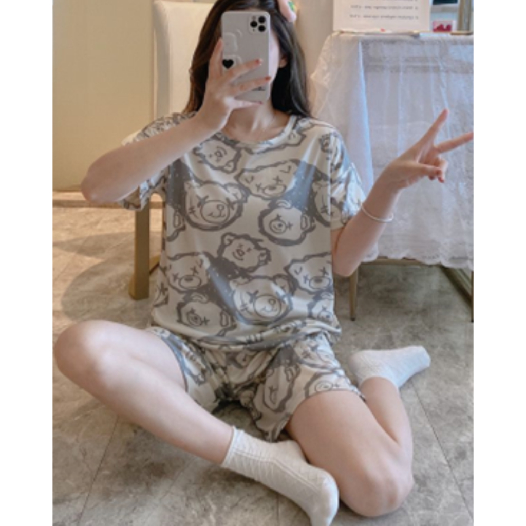 OPT P2 Free Ongkir Pakaian Tidur Piyama Set Wanita Baju Kaos Pendek Celana Pendek Polyester