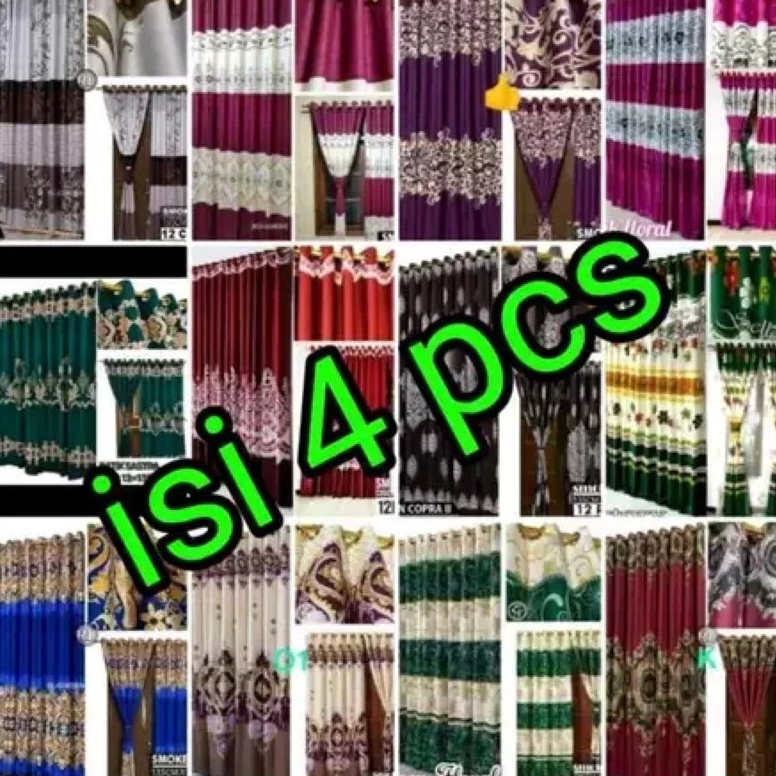 (Paket Isi 4) Gorden Smokring 12Ring Free Tali Gorden/Gorden Pintu Jendela Motip Sultan Gratis Tali Gorden Motif Terbaru