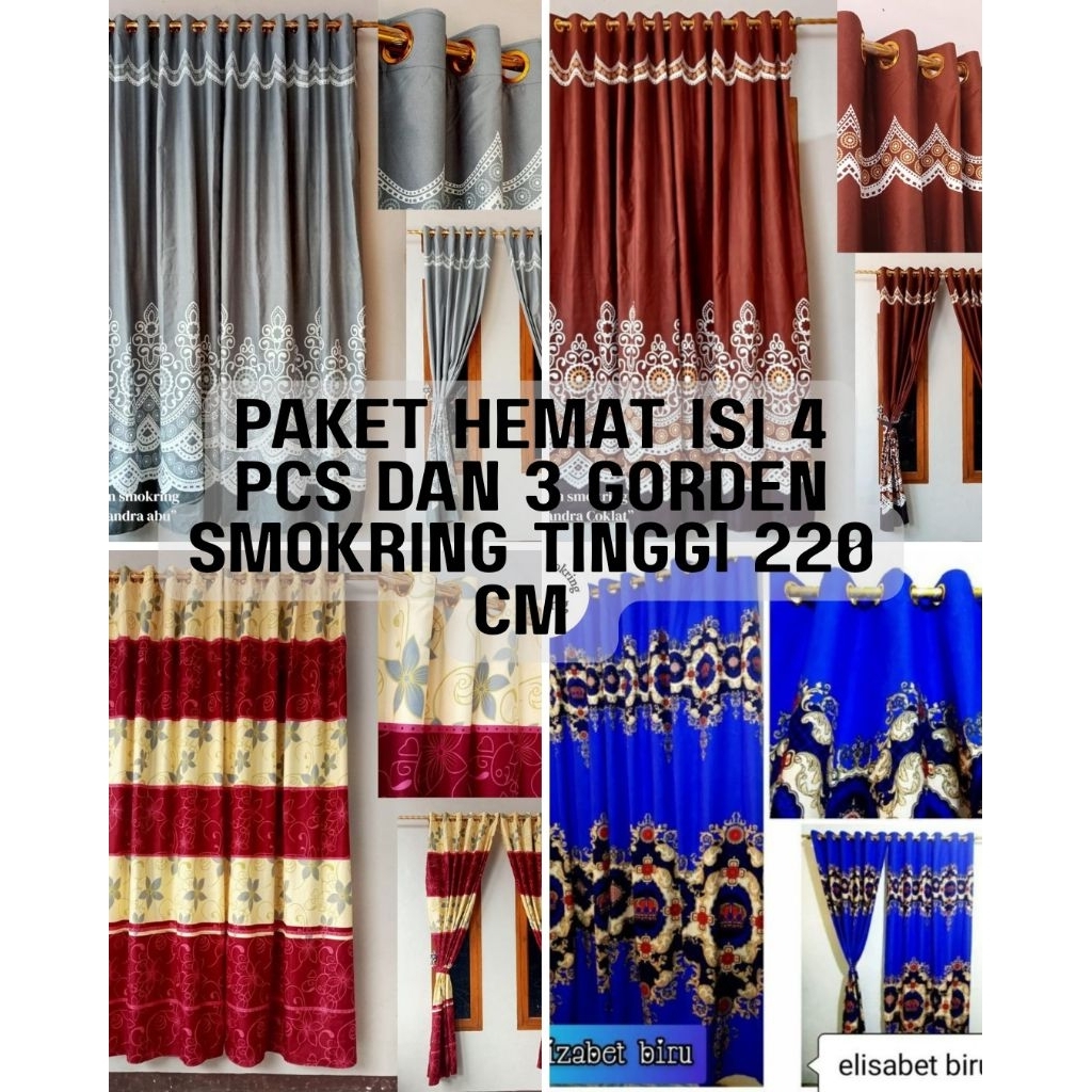Gorden Smokring 220Cm – Paket Hemat Isi 4 Vitrase + 3 Gorden Elegan Untuk Rumah Minimalis