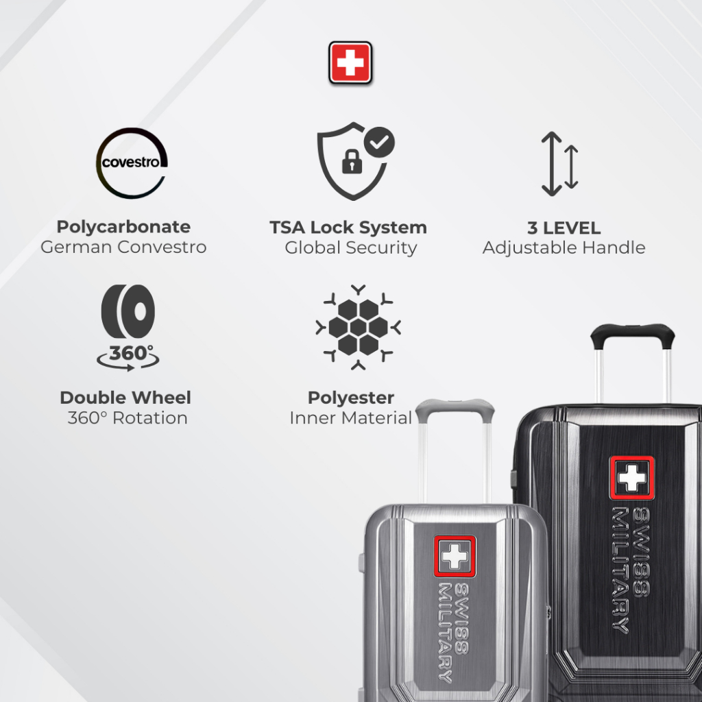 Swiss Military Koper Stila Set Bundling Dark Gray - Koper Kabin 20 Inch & Koper Bagasi 24 Inch