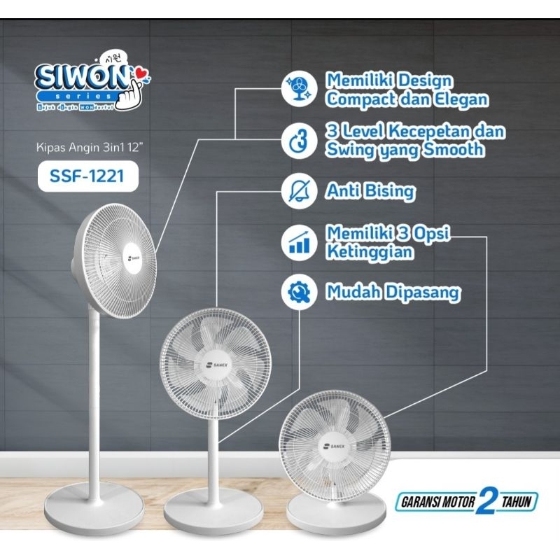 SANEX Stand & Desk Fan Kipas Angin Meja & Berdiri 2 IN 1 12 Inch 7 Baling SSF-1221 N Design Modern & Minimalis Baling Be