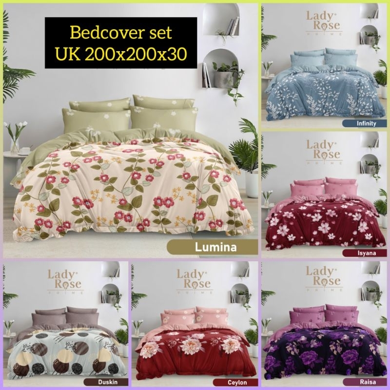 Bedcover Set Uk 200X200 Ladyrose Tinggi 30 / Bed Cover Satu Set Super King Lady Rose