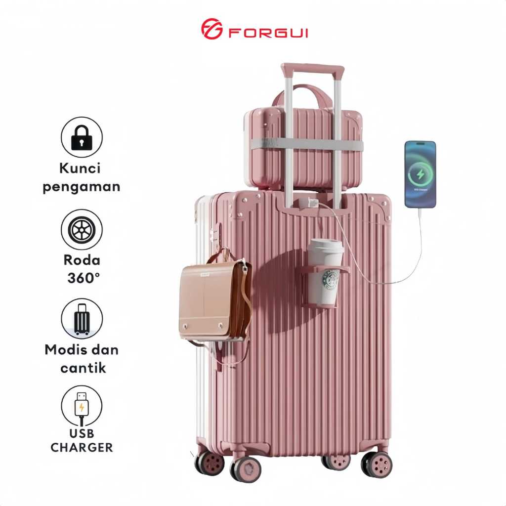 Forgui Koper Mini Wanita 18 Inch Koper Kabin Usb Charger 20 Inch Kapasitas Besar 24 Inch Koper Cup Holder