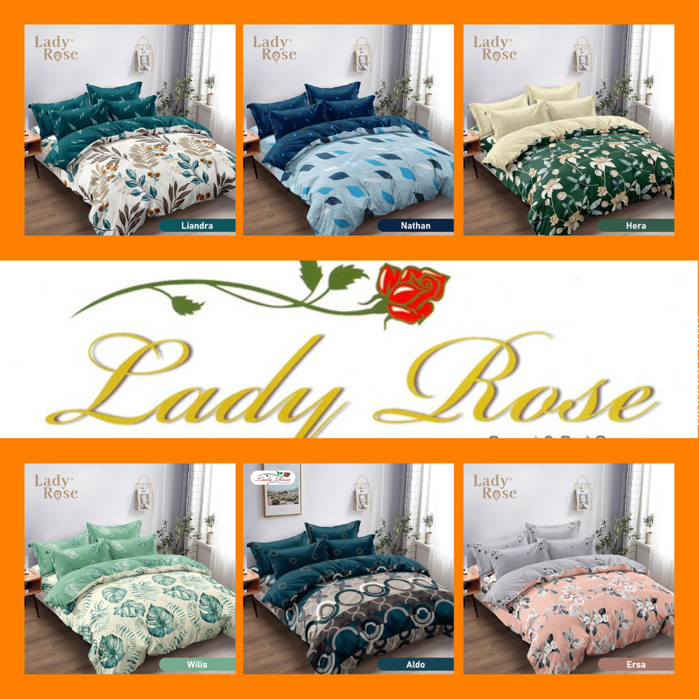 Bedcover Lady Rose Set 180X200 | King Love Sprei Flat | Karet | Fitted Selimut Tebal Karet | Fitted |Flat King No 1 Lemb