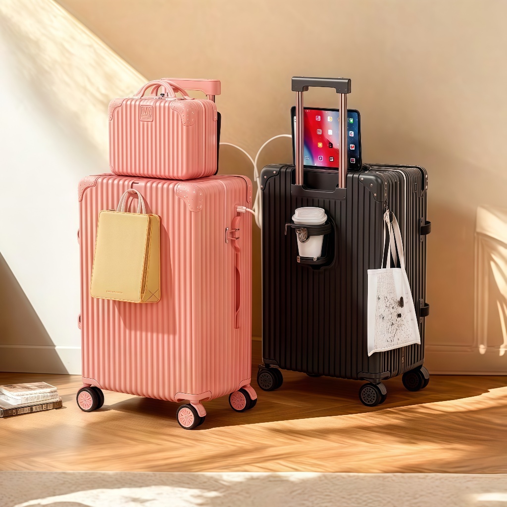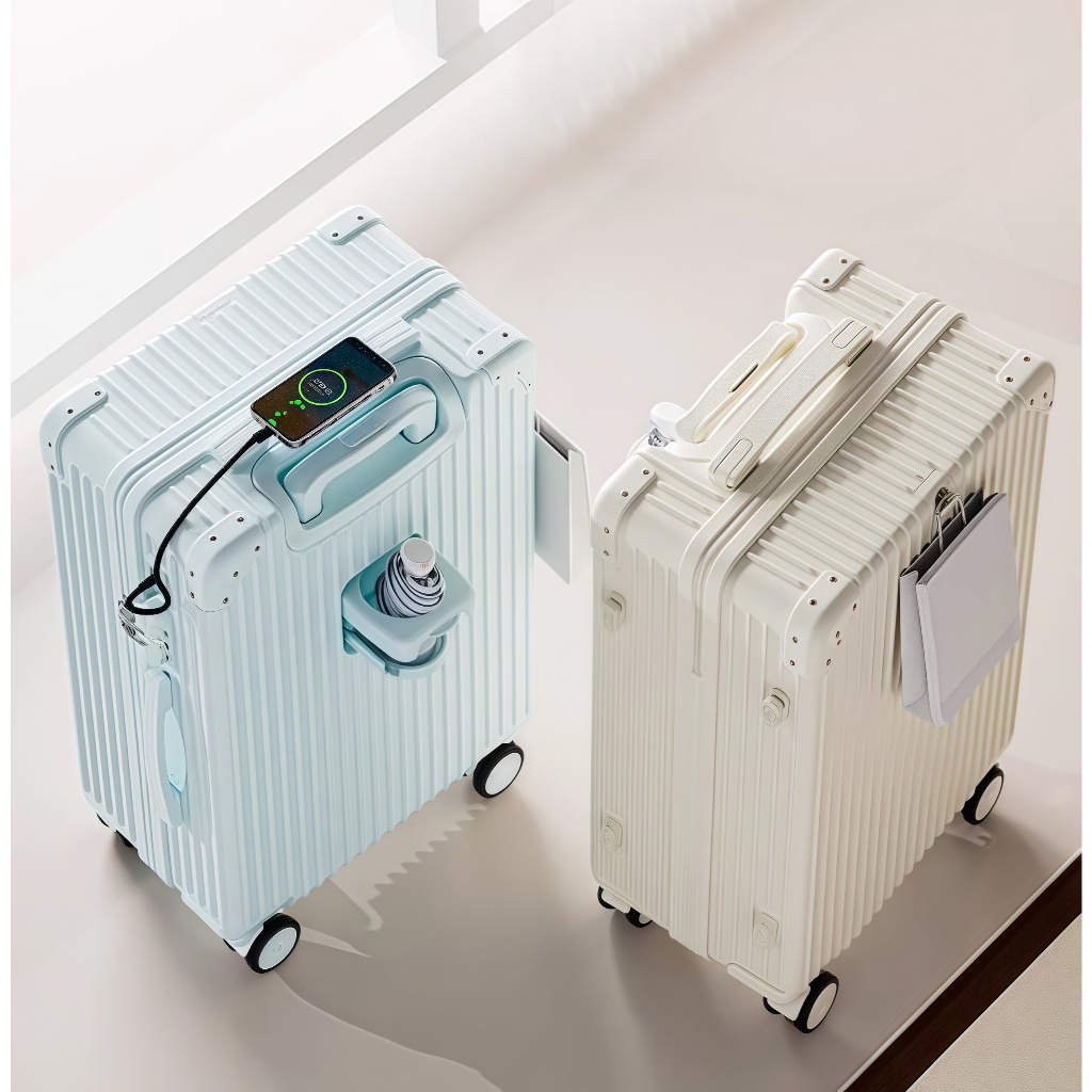 Mdjamie Koper Troli 24 Inch Kapasitas Besar Koper Tempat Gelas Air 20 Inch Multifungsi Koper 22 Inci Pengisi Daya Usb