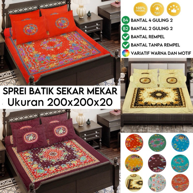 Sekar Mekar Sprei Batik 200X200X20 Tinggi 20 Set Kasur King Lokal Flora Sudut Karet Anti Geser Motif