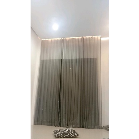 Gorden Vitrase Abu Import, Model Kaitan Kawat S Plisket Lebar 300Cm.3Mtr