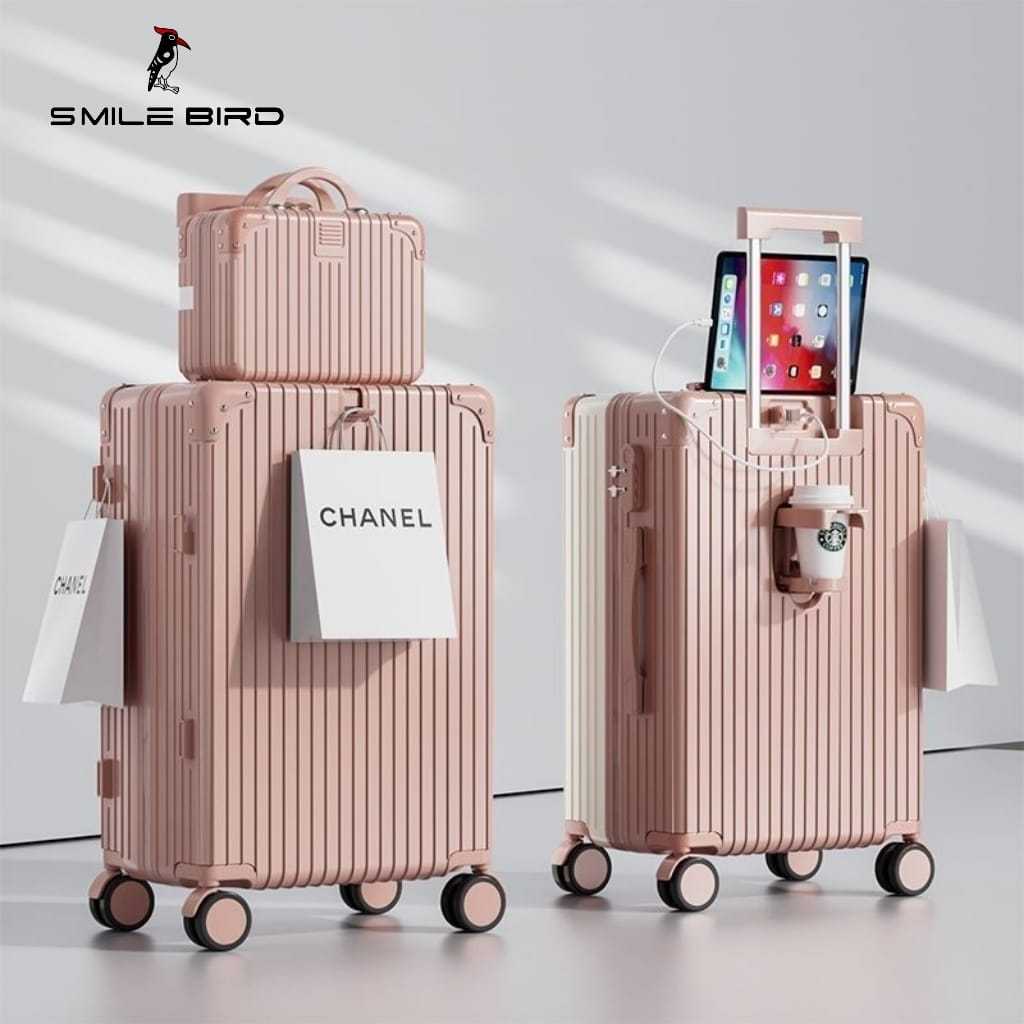 Smile Bird Koper Troli 24 Inch Kapasitas Besar Koper Tempat Gelas Air 20 Inch Multifungsi Koper 22 Inci Pengisi Daya Usb