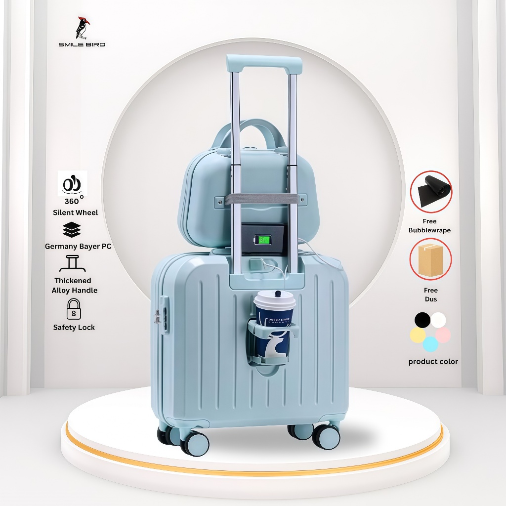 Smile Bird A315 New Koper Kabin Mini 18 Inchi Dengan Roda Berputar 360 Desain Fashionable