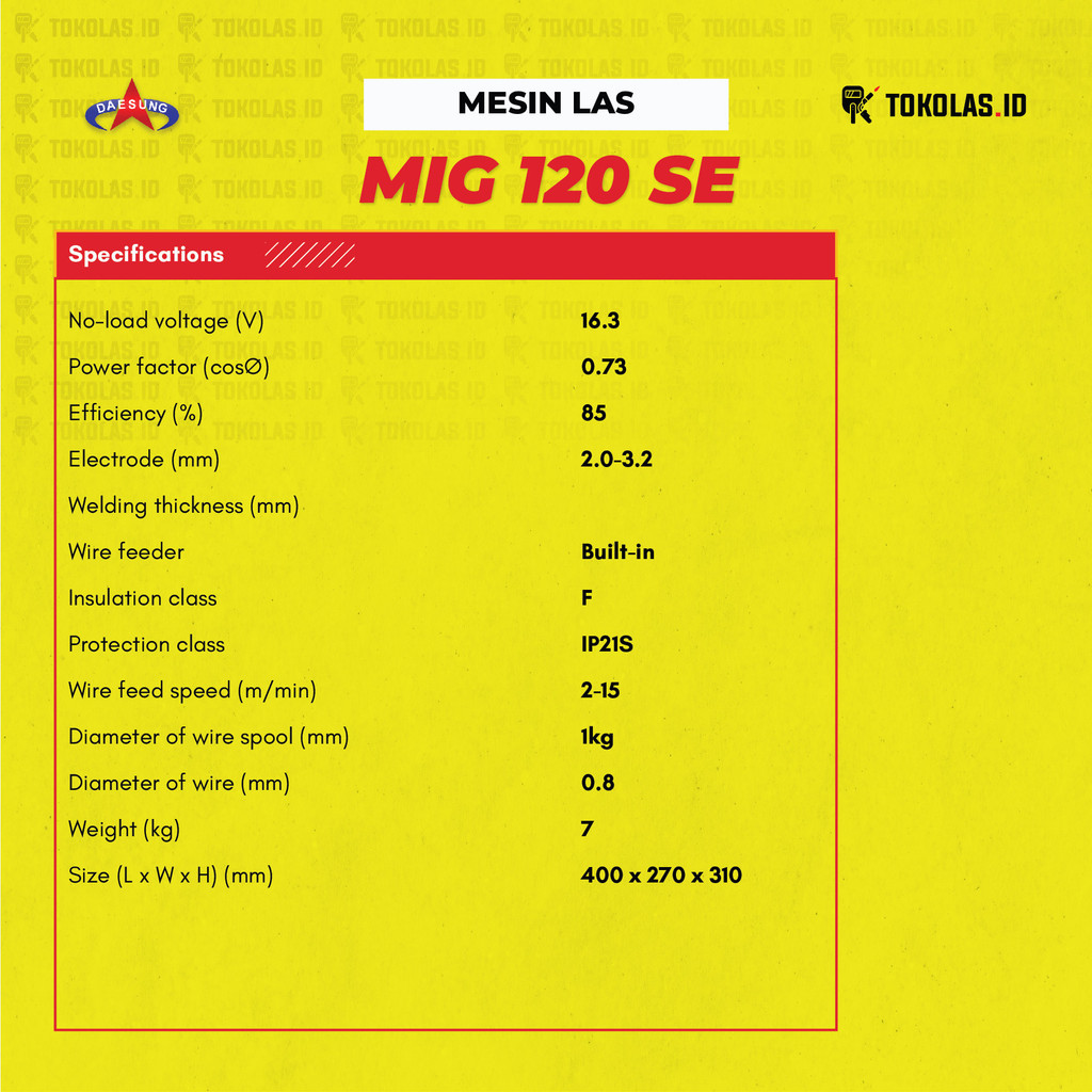 Mesin Travo Las Daesung Mig 120 Se 4 In 1 Mma Mig Gas Co2 Mig Tanpa Gas Tig Multifungsi Original