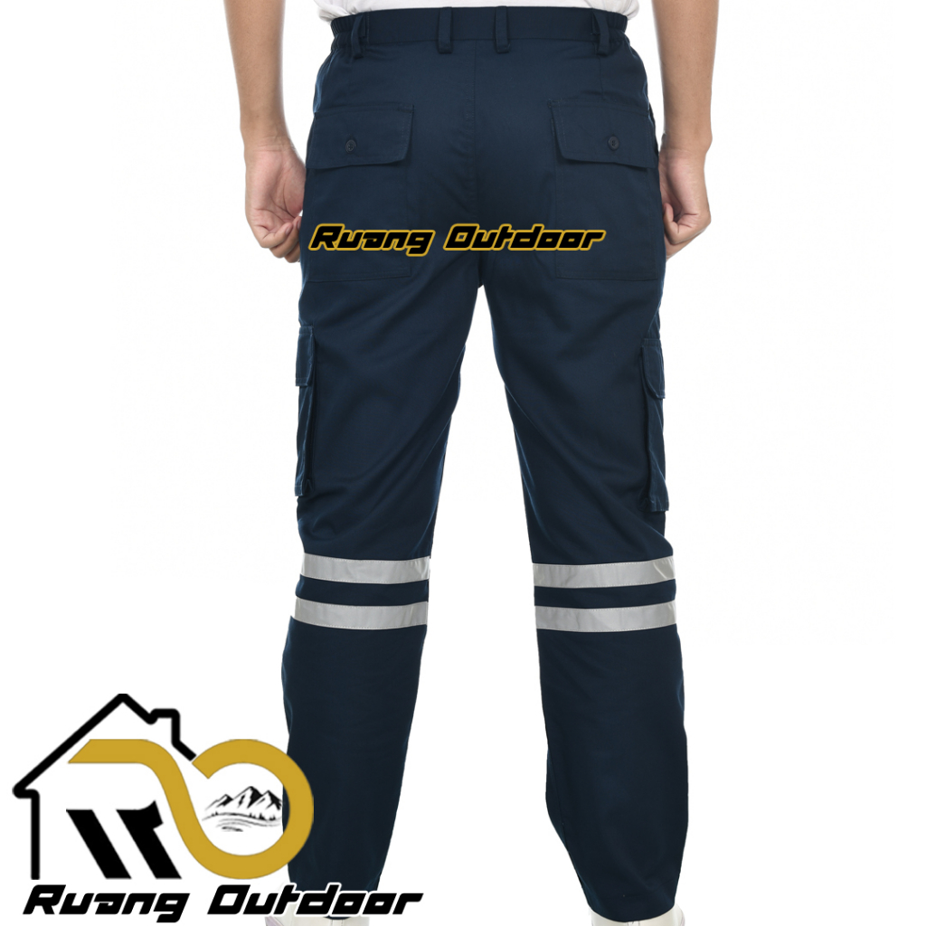 Celana Safety Pria Wanita - Celana Proyek Wearpack K3 Lapangan Outdoor Scotlite Indonesia Tebal Pinggang Karet Tambang L