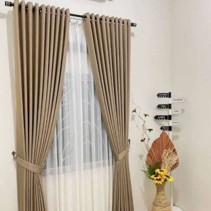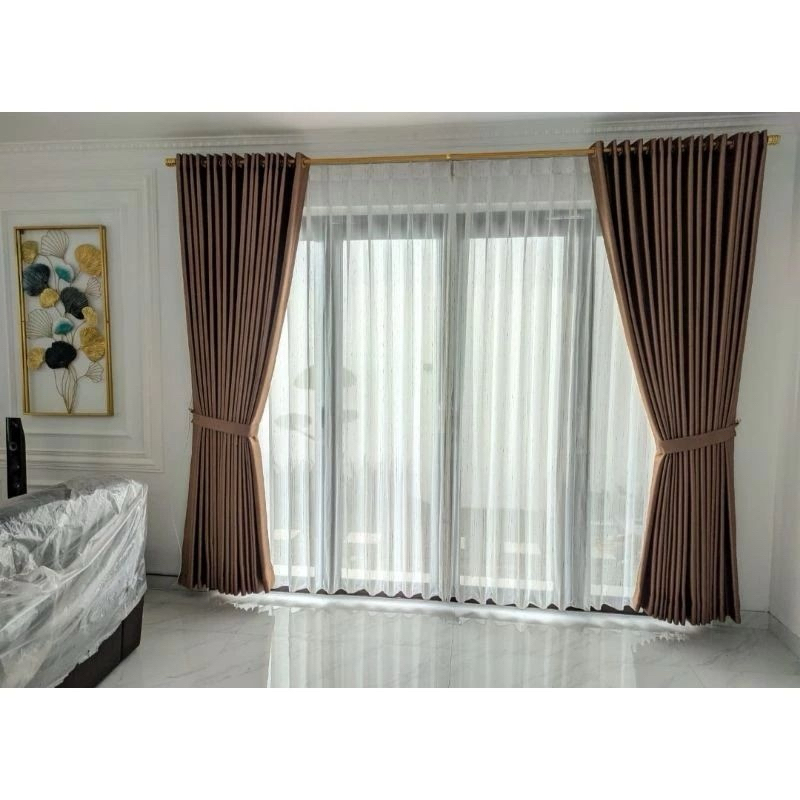 Gorden Blackout Motip Akar Zia Bahan Buludru Tebel Jendela Minimalis Pintu