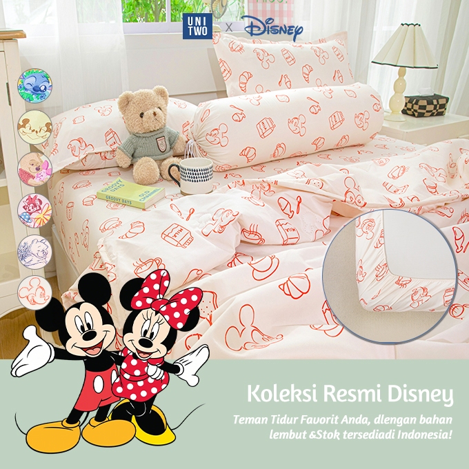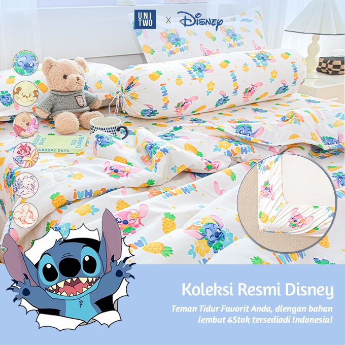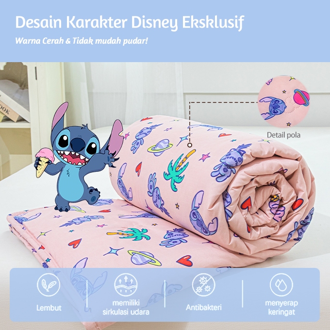 Unitwo Premium [Bed Cover + Seprei Set] Official Disney Series Bed Cover Seprei Set Motif Disney Karakter, Stitch, Tinke