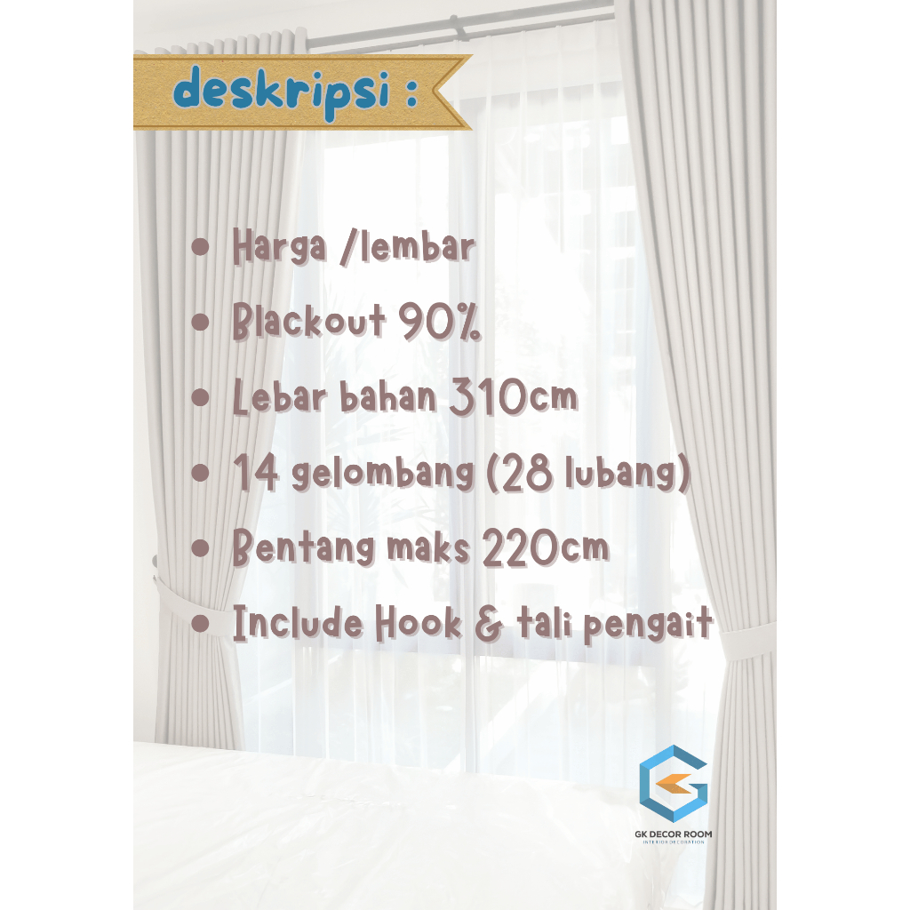 Gorden Jendela Lebar/ Gorden Blackout 14 Gelombang