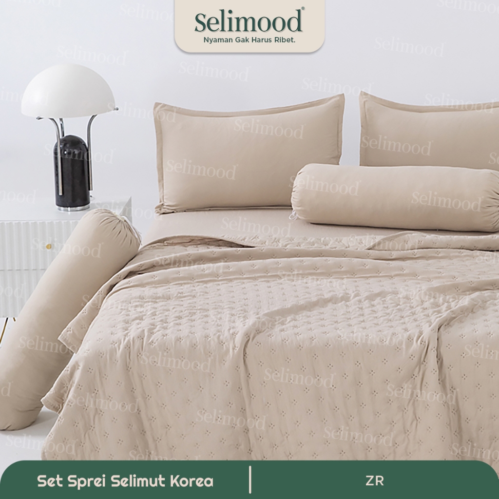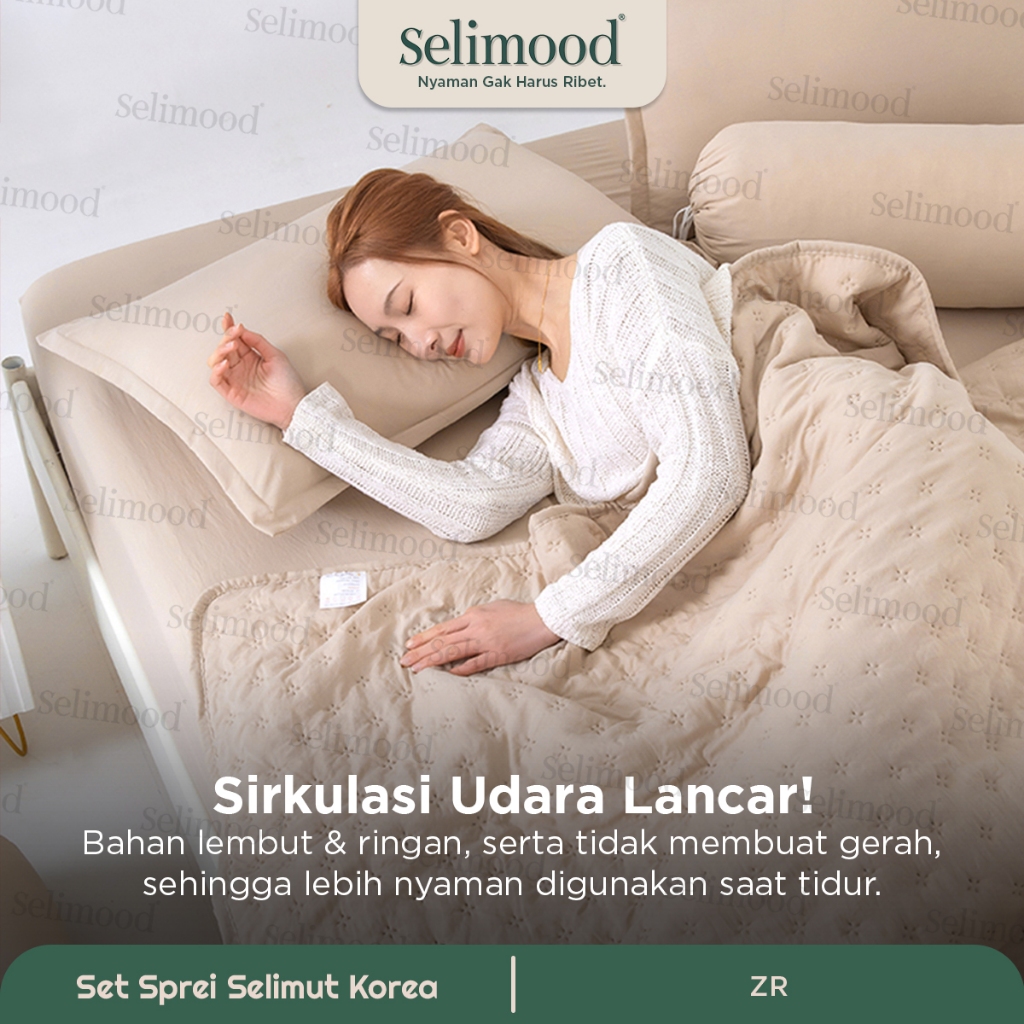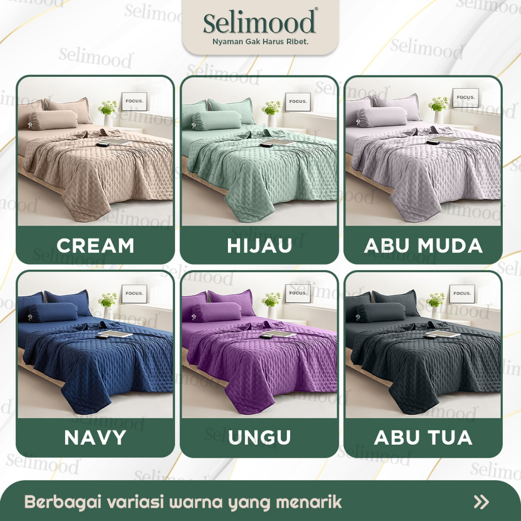 Selimood- Set Bedcover Seprei Sarung Bantal Guling Motif Polos Bahan Microtex Dacron