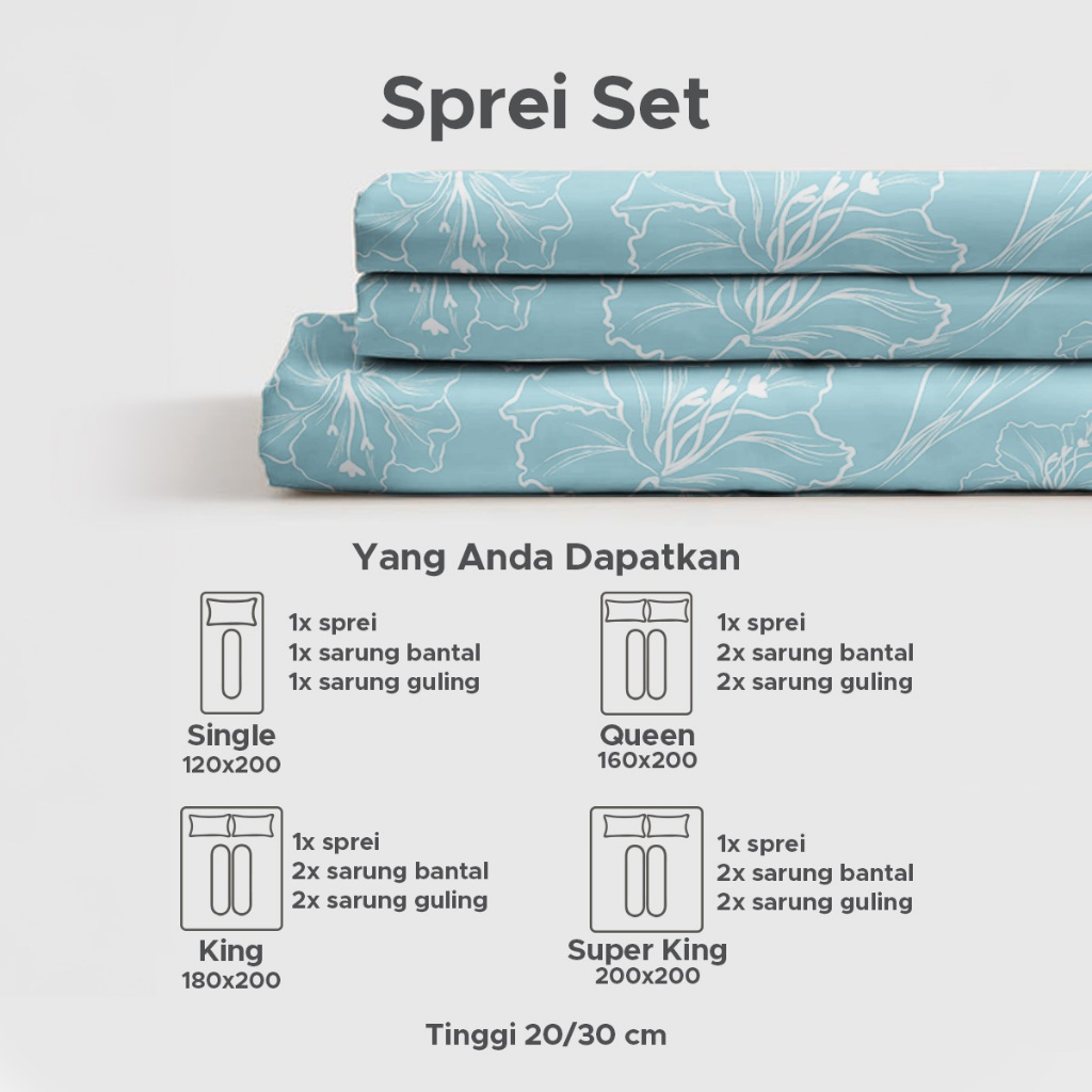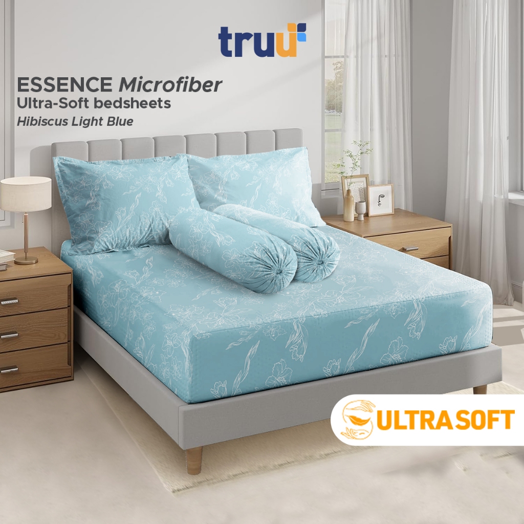 Truu Essence Microfiber Sprei Eksklusif Hibiscus Flower Light Blue Tr.P038 120/160/180/200Cm Tinggi 20/30 Cm Ultra-Soft