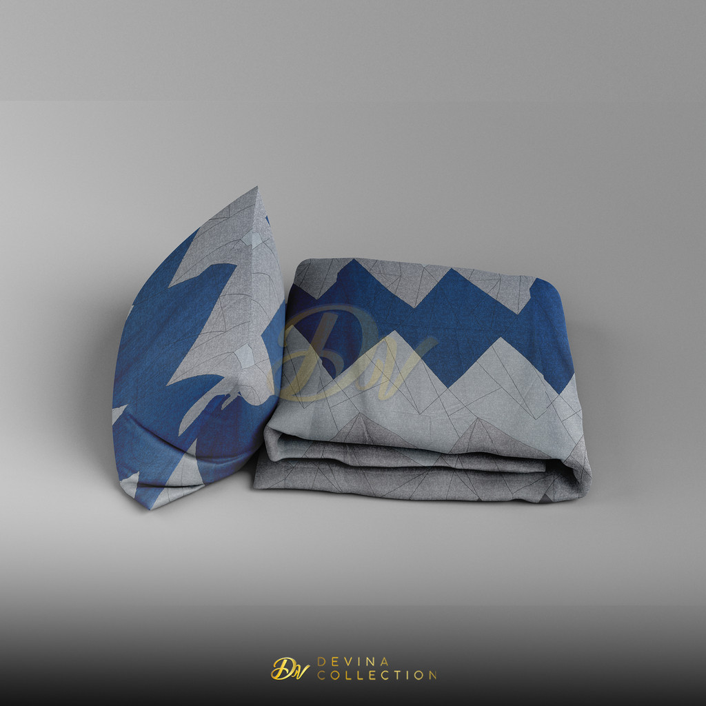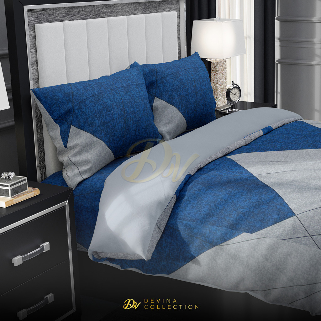 Devina Collection Bedcover Sprei Set Karet Anti Geser Motif Exclusive Kenzo Blue Uk King 180X200