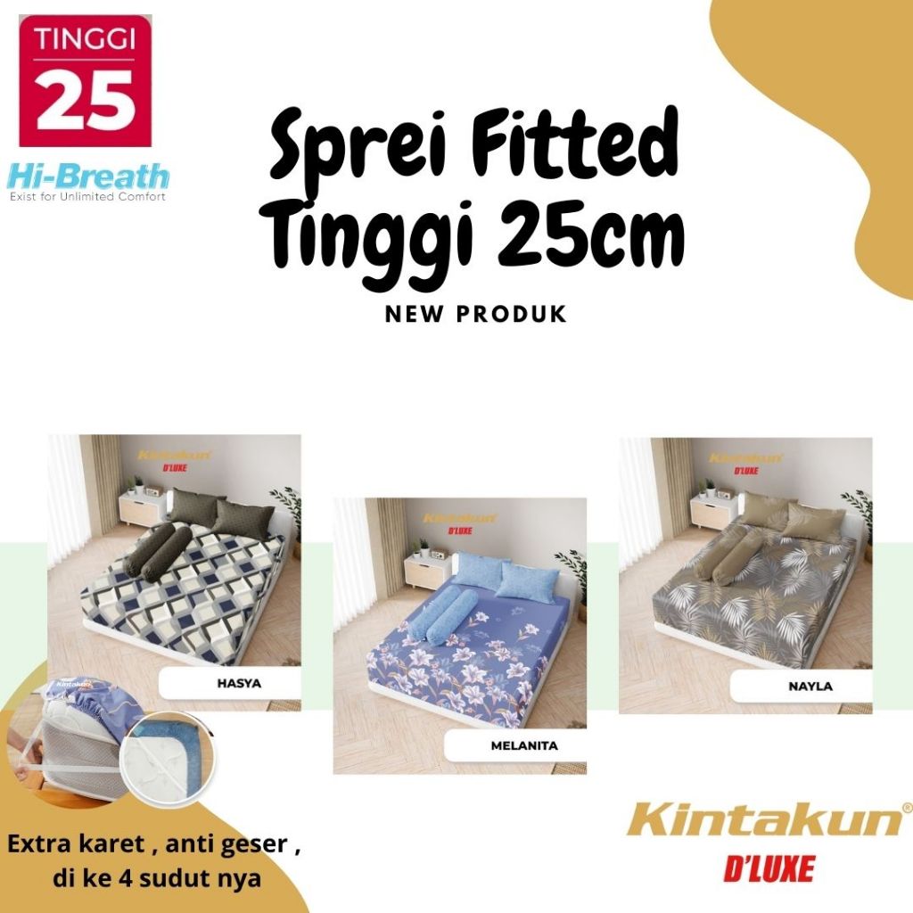 Kintakun Deluxe - Sprei Fitted King B4 T25 (180X200) (Bantal 4) Super Tinggi 25 Ada Karet Anti Slip Terlaris Pilihan