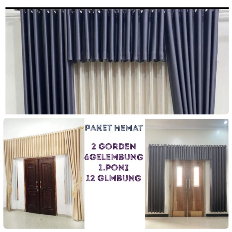 Paket Hemat Gorden Blackout Polos Import Premium 2 Gorden 6Gelembung 1Poni 12Gelembung
