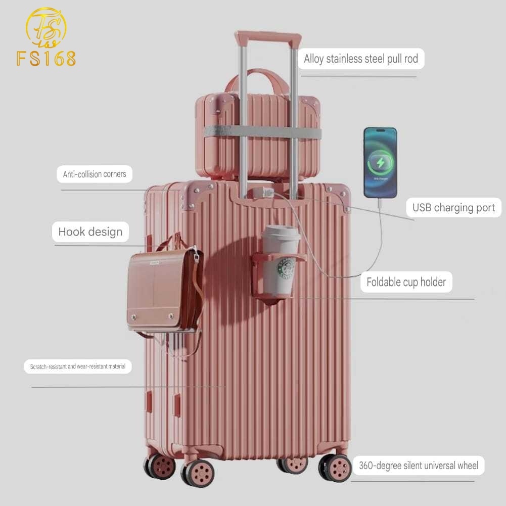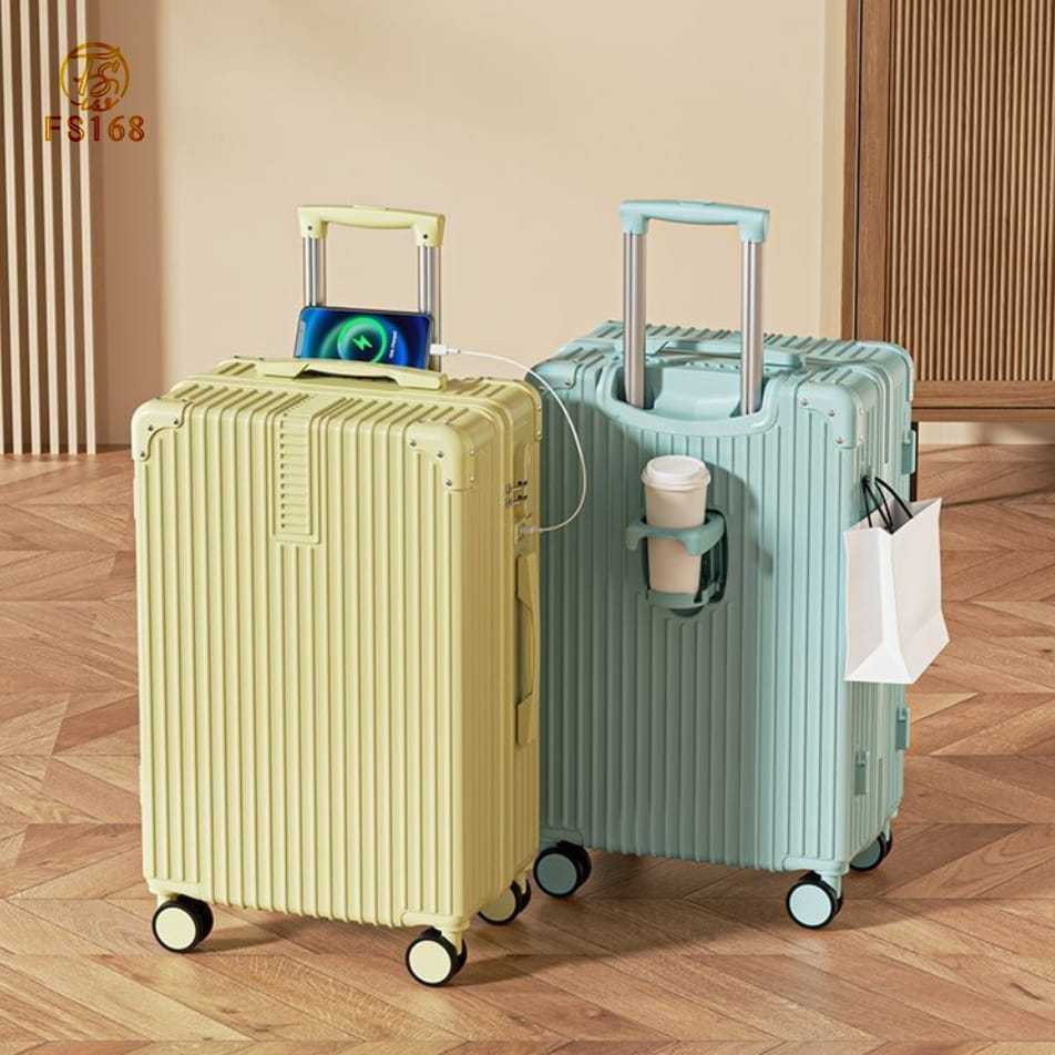 Fs168 Koper Travel 20 Inch Pengisi Daya Usb Tas Troli Tempat Gelas Air Wanita 24 Inch Casing Penerbangan 22 Inci