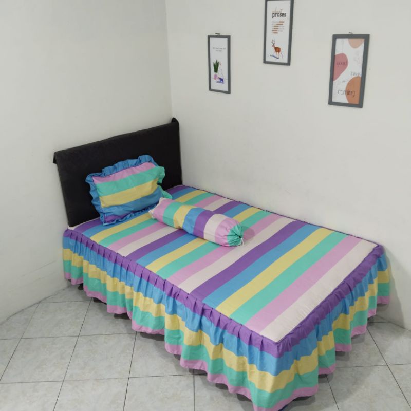 Vito 3D - Sprei Rumbai Single 120X200X20 Motif Warna Warni Minimalis Rainbow Green Paris Parisian Eifeel Eifel Kotak Cok