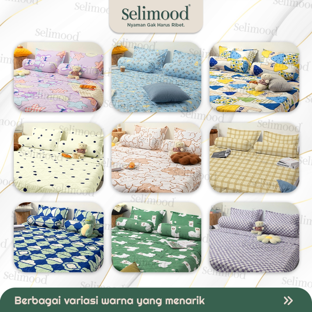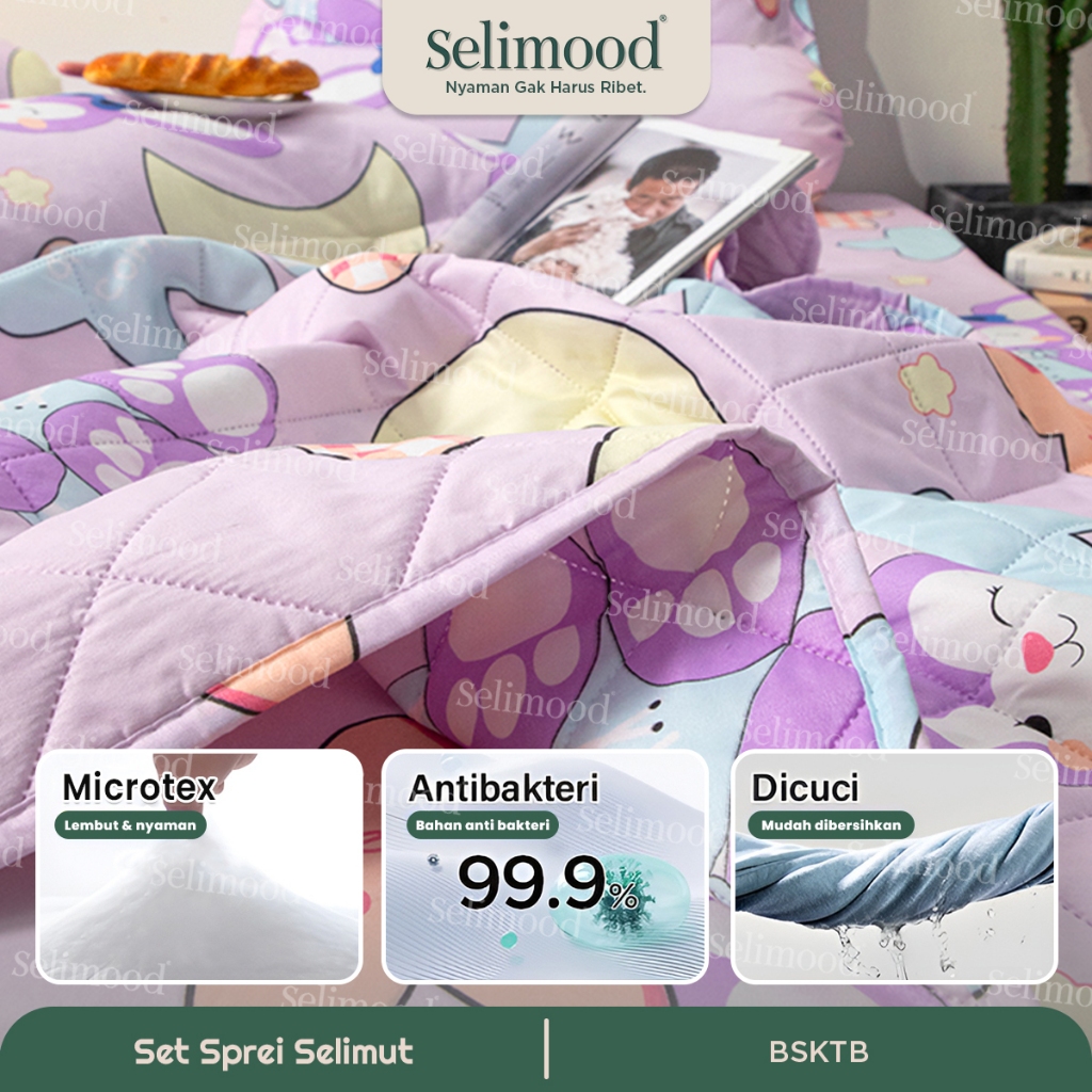 Selimood - Set Sprei Bedcover Sarung Bantal Guling Bahan Microtex Pilihan Motif Lucu Dengan 3 Ukuran