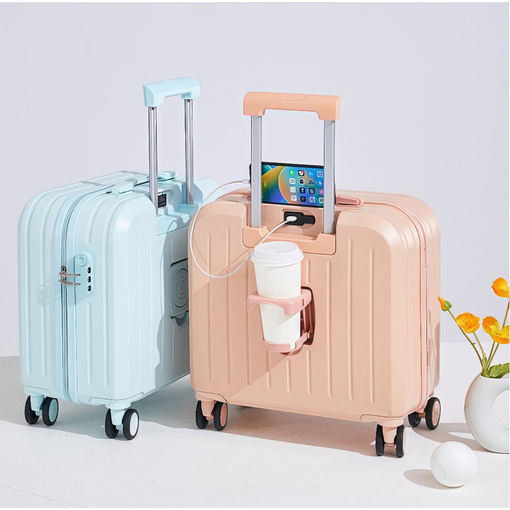 Mdjamie Koper Zipper Kapasitas Besar 18 Inch Stand Cup / Usb Charger Koper Travel Modis
