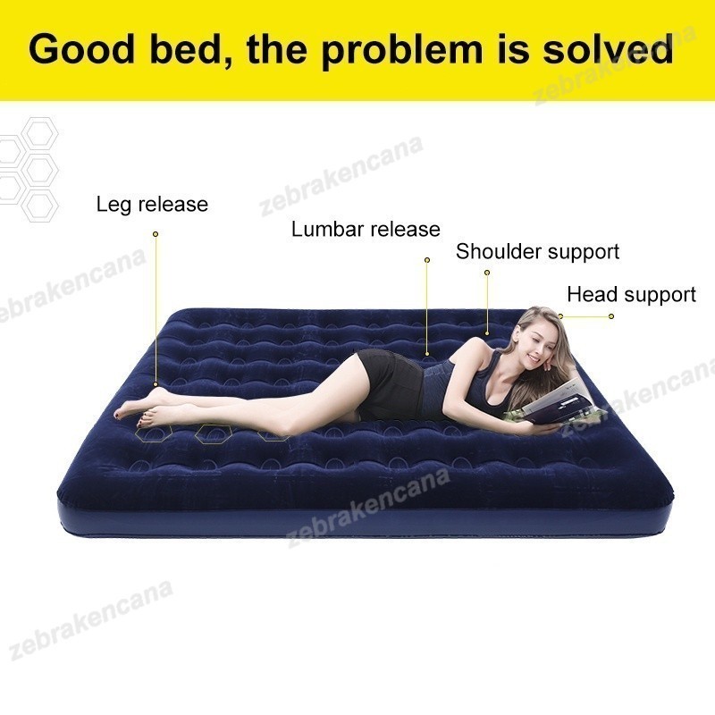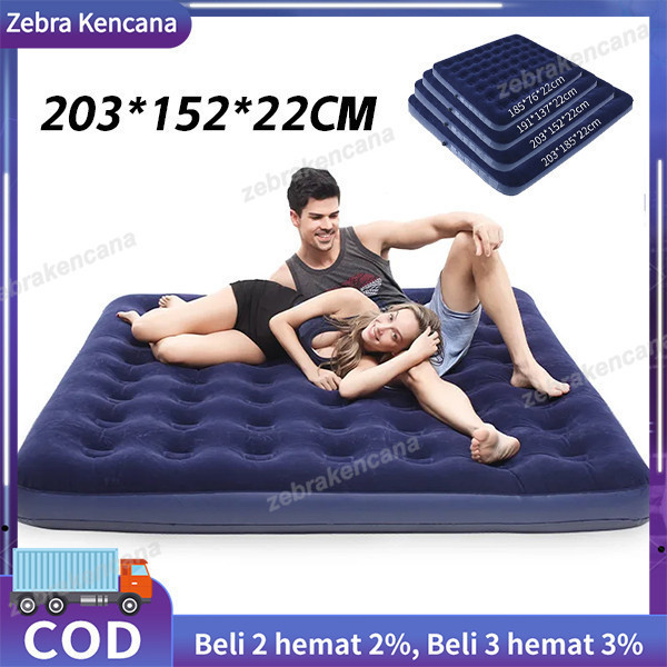 【203X152X22Cm】Kasur Angin Bestway + Pompa Manual Bestway Paket Kasur Angin Double Biru/ Paket Kasur Tiup Air Bed Double