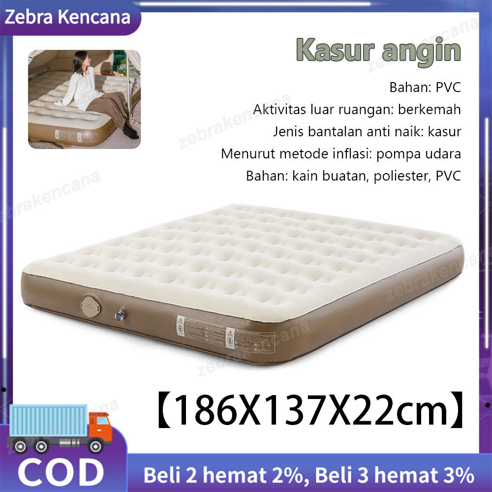 【186X137X22Cm】Kasur Angin Queen Krem Kasur Tiup Single Twin Double Kasur Tiup Air Bed Queen Size Paket Kasur Tiup Matras