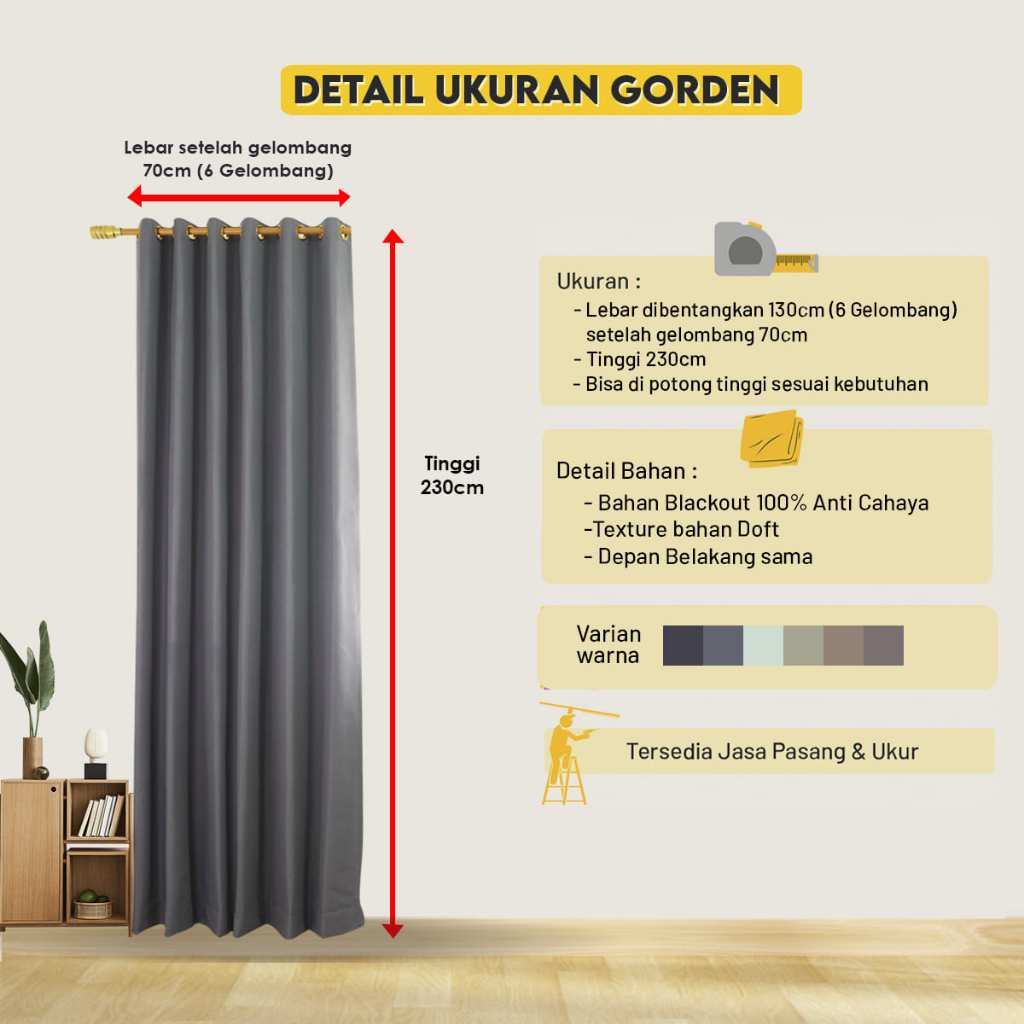 Gorden Jendela Aesthetic Blackout 100 PERSEN Polos Anti Cahaya Hotel Jendela Pendek - Juliet Collections
