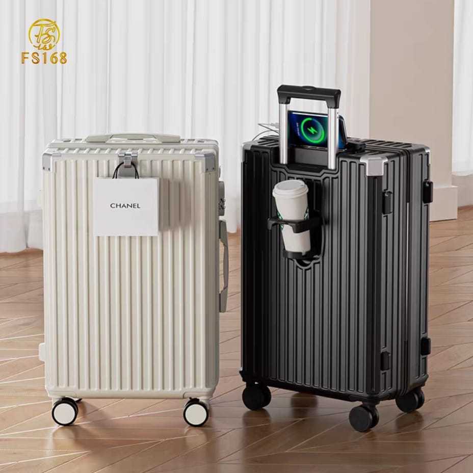 Fs168 Koper 24 Inch Pengisian Daya Usb Kotak Kata Sandi 22 Inci Dengan Tempat Cangkir Koper Kabin 20 Inch