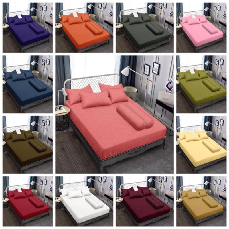 Vallery Quincy - Sprei Polos Embossed King T30 ( 180X200X30 ) - Sarung Bantal Dan Sarung Guling Jumbo - Warna Terlaris D